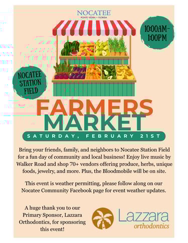 Saturday February 21st – Nocatee Farmers Market - Nocatee